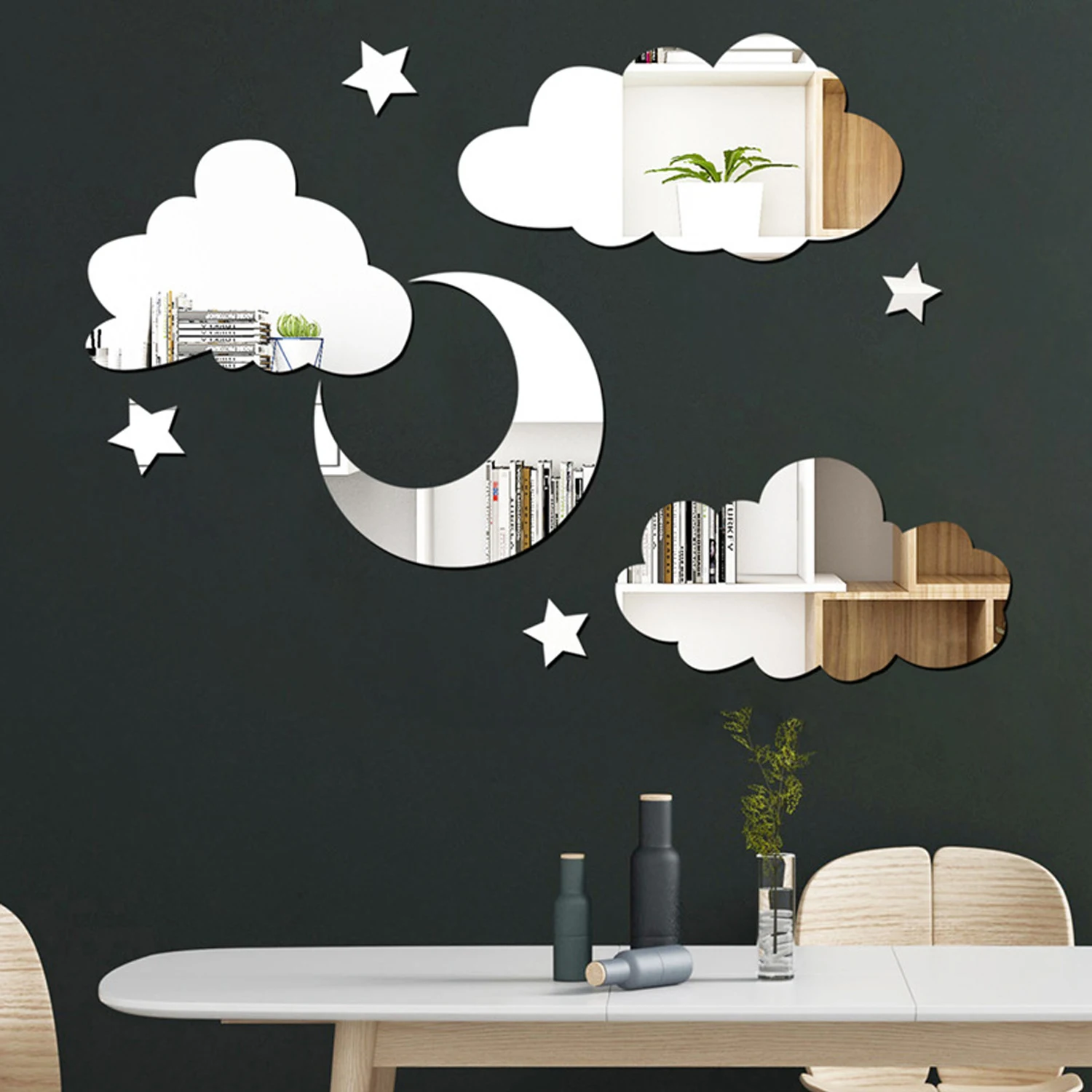 거울 벽 스티커 새로운 구름 문 스타 조합 3D 아크릴 벽 스티커 DIY 침실 거실 욕실 현대 홈 장식