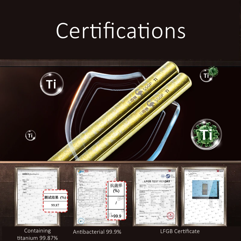 고급 순수 티타늄 젓가락, 코르스 감염 방지, 5 색 단열 LFGB 인증서, 중국 가족 식기, 10 개