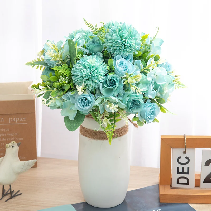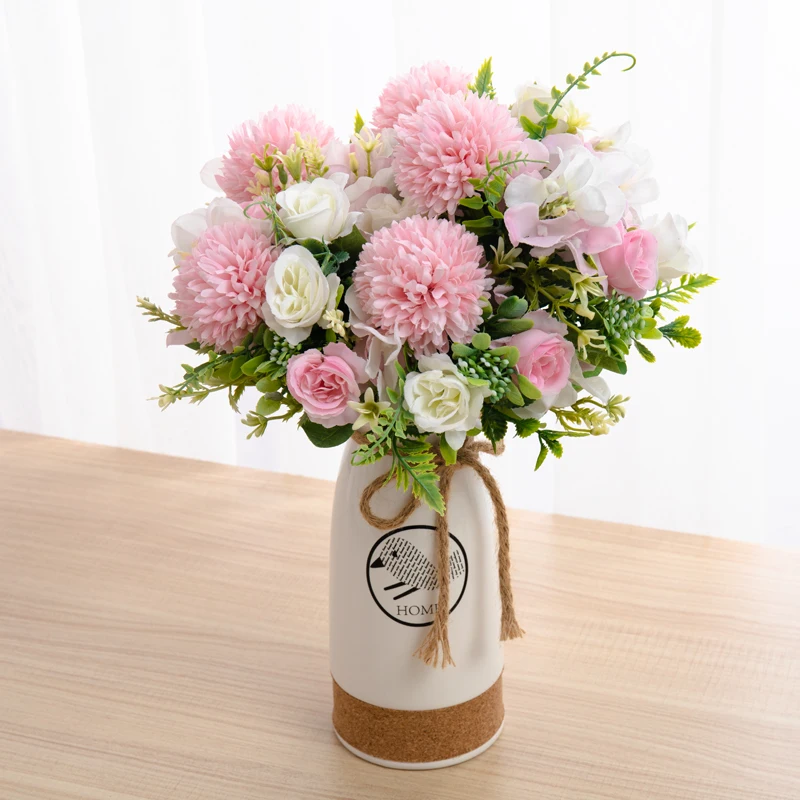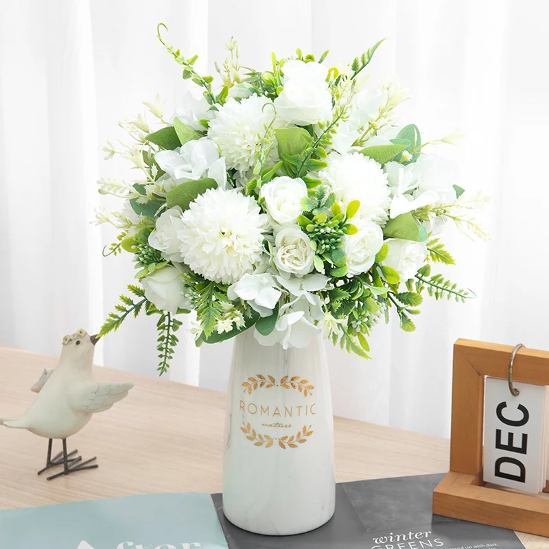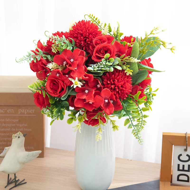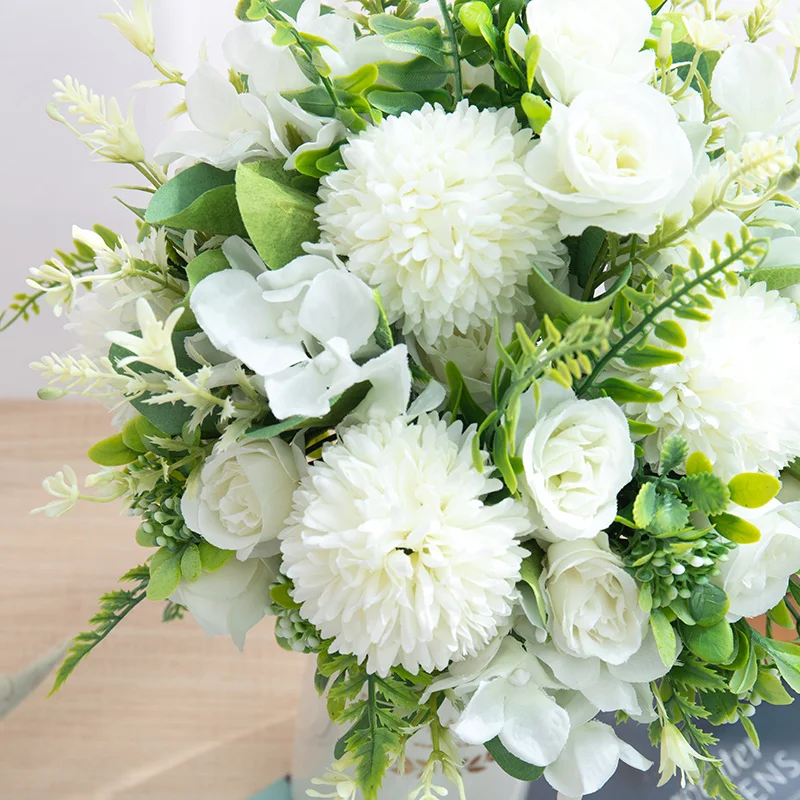 꽃병 웨딩 홈 장식을위한 장미 인공 꽃 가짜 실크 선물 꽃다발 공예 파티 테이블 수국 꽃꽂이