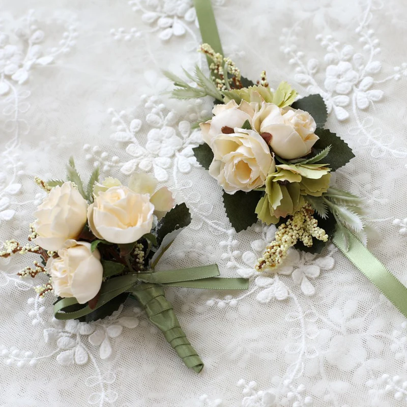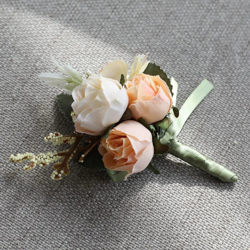 남성용 손목 코사지 웨딩, 신랑 핀, 신부 들러리 손목 코사지 꽃, 실크 레드 로즈 부토니에