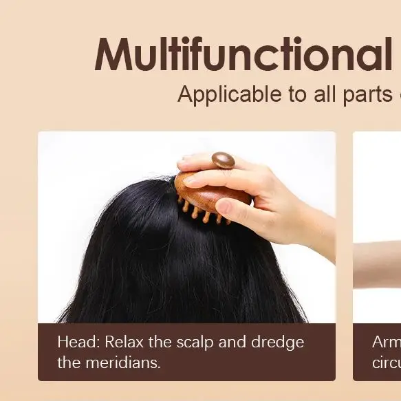 다기능 헤드 자오선 빗 나무 치료 마사지 빗 두피 마사지 천연 백단 헤어 브러시 바디 마사지 도구