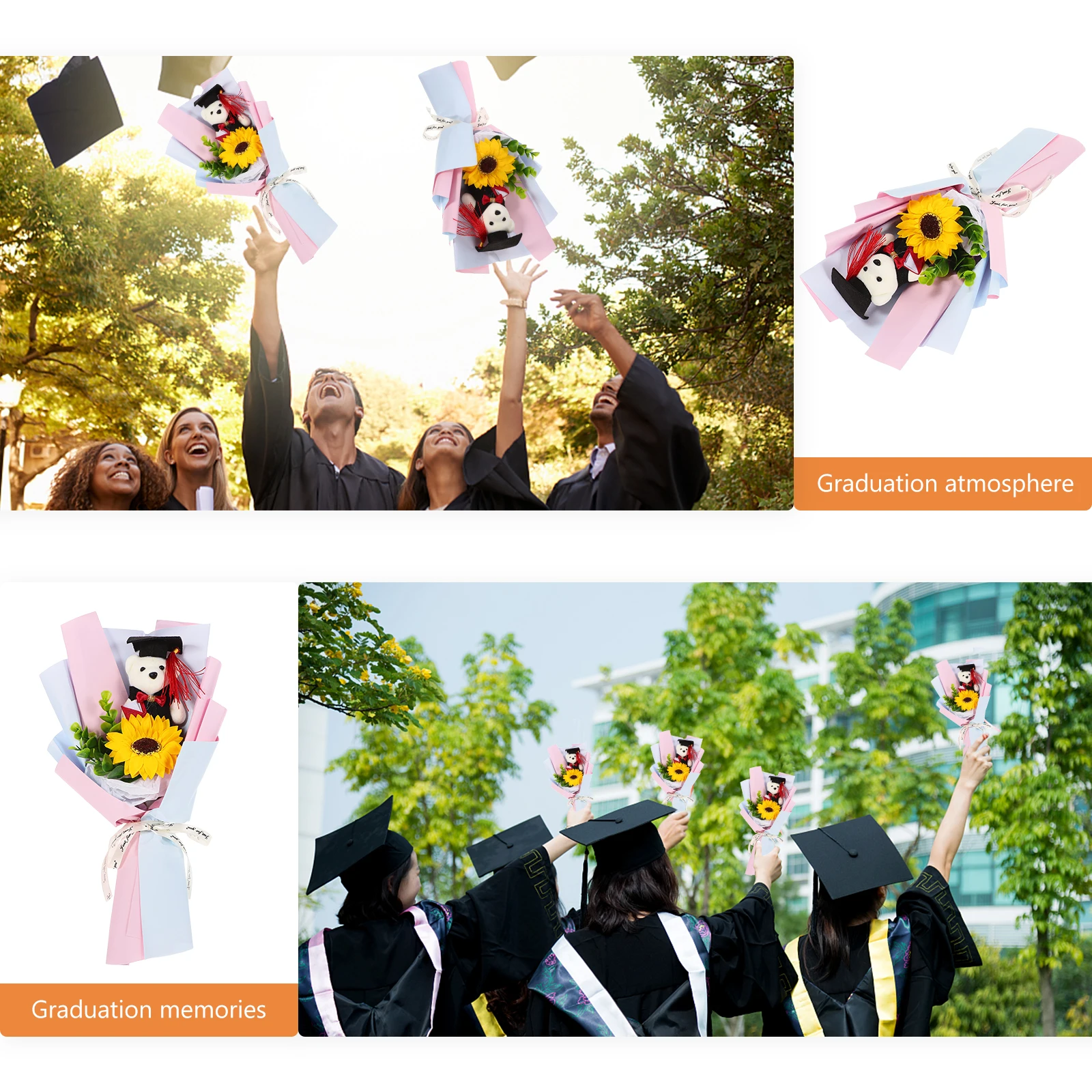 -졸업 시즌에 딱 맞는 이 곰 꽃다발은 동급생을 위한 사랑스러운 졸업 선물입니다.졸업곰 꽃다발