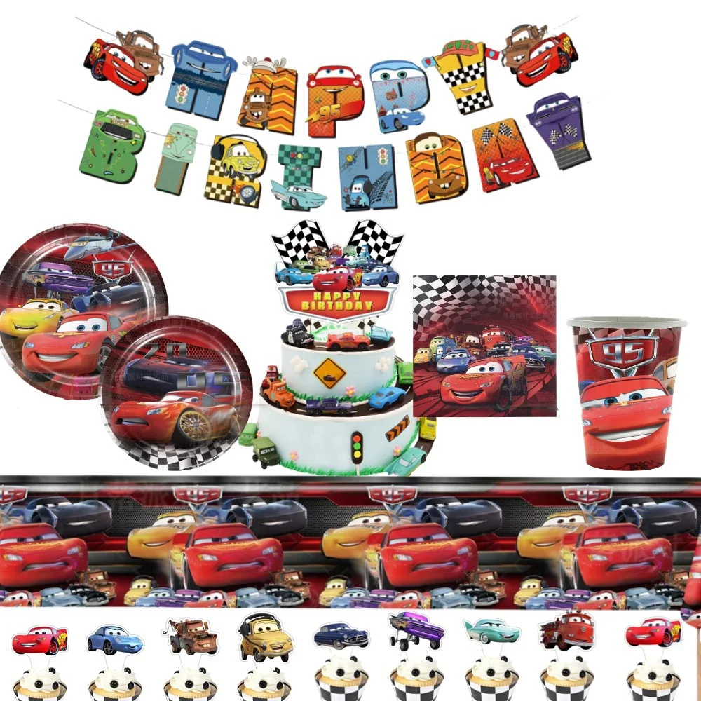 디즈니 픽사 자동차 생일 장식 픽사 자동차 종이컵 접시 식기 용품 어린이를위한 식탁보 풍선 파티 장식