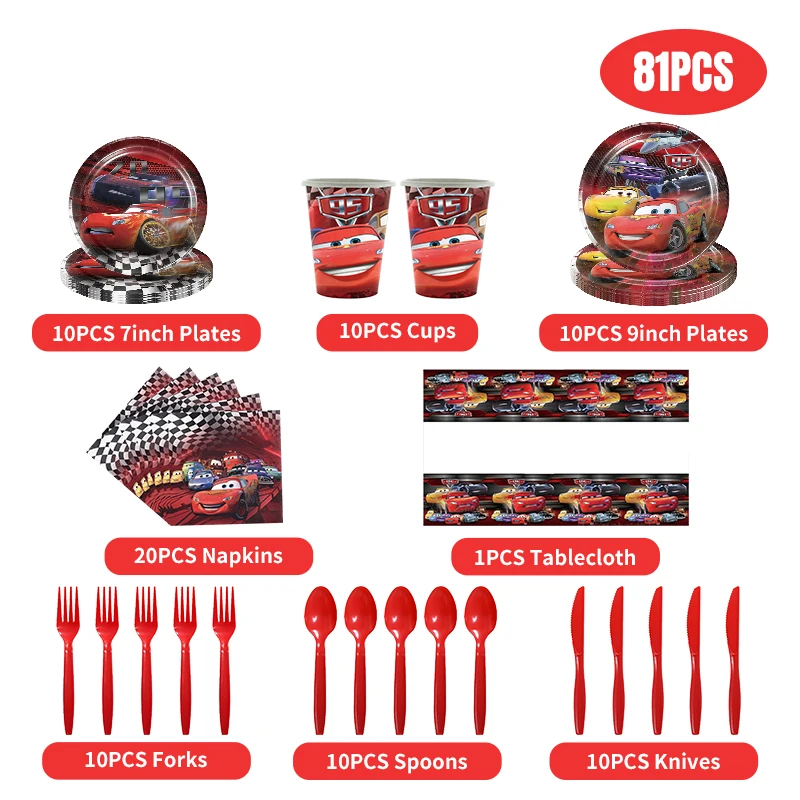 디즈니 픽사 자동차 생일 장식 픽사 자동차 종이 컵 접시 식기 용품 어린이 파티 장식을위한 식탁보 풍선