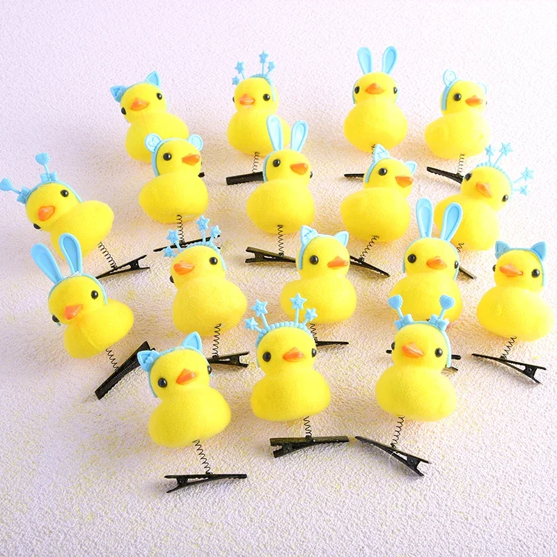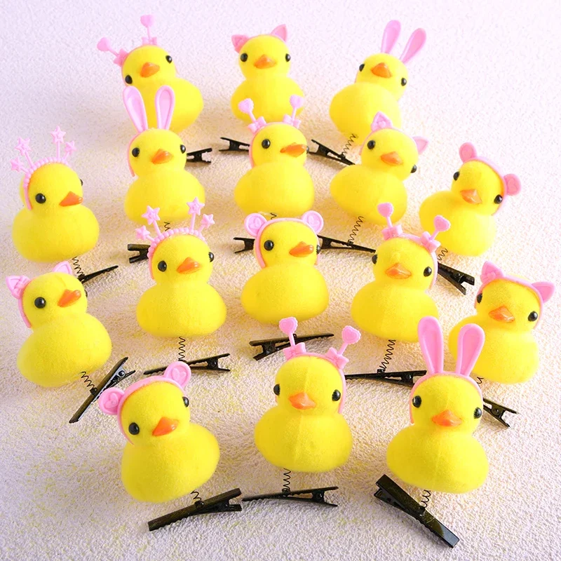 패션 어린이 작은 노란색 오리 봉제 머리핀