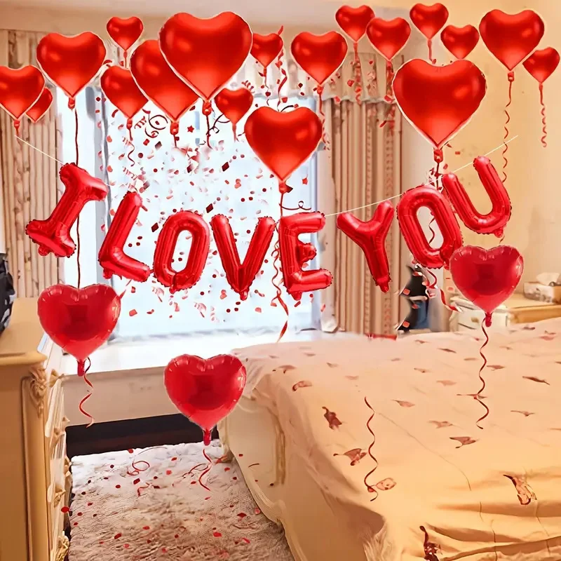 “발렌타인 데이 결혼 기념일 파티 장식을위한 시뮬레이션 된 장미 꽃잎과 당신을 사랑합니다 풍선 빨간 심장 풍선 세트”의 첫 상품평을 남겨 주세요