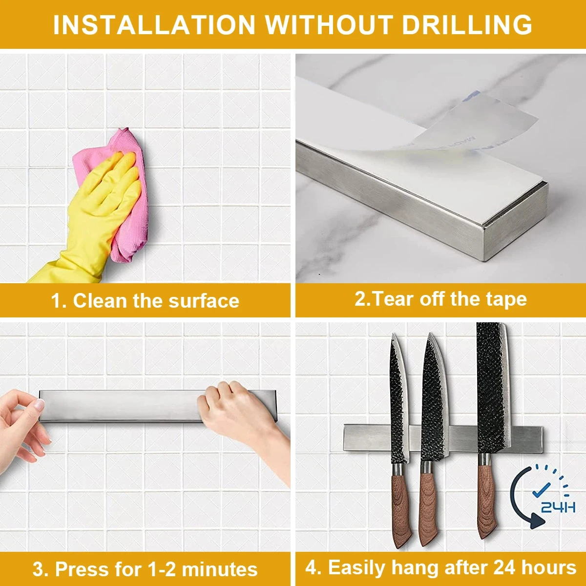 강력한 자력: 견고한 프리미엄 품질의 칼 자석 스트립으로 주방 정리를 업그레이드하세요.당사의 자석 스트립에는 칼을 안전하게 고정하여 칼이 제자리에 고정되고 쉽게 접근할 수 있는 강력한 네오디뮴 자석이 있습니다.