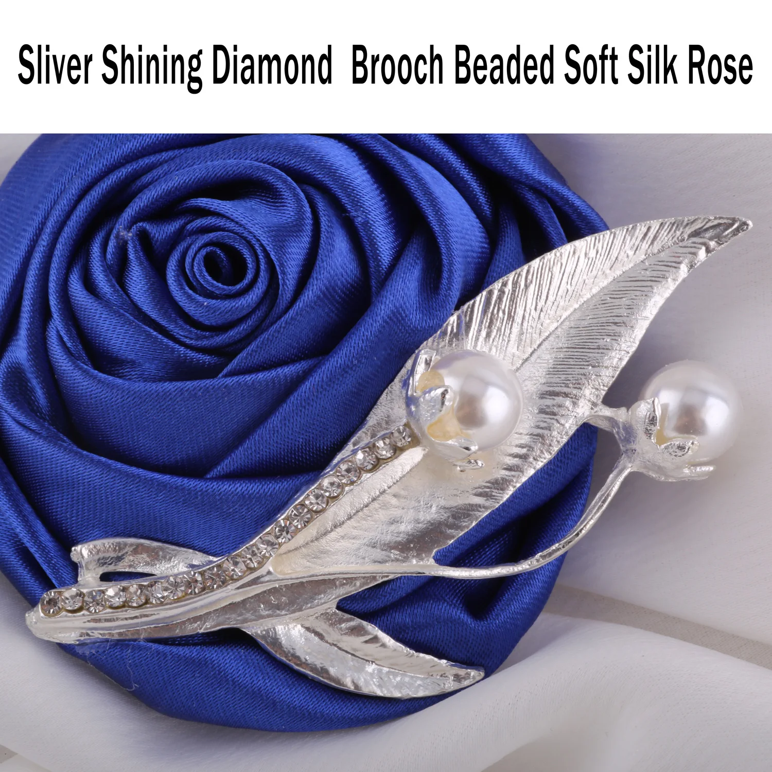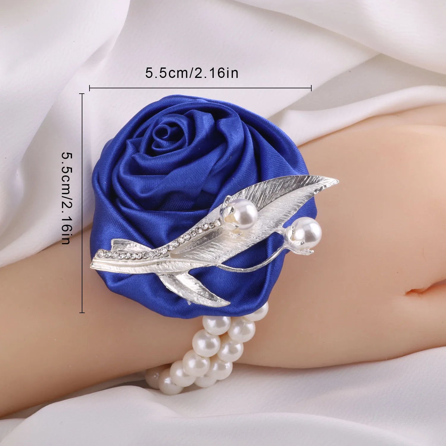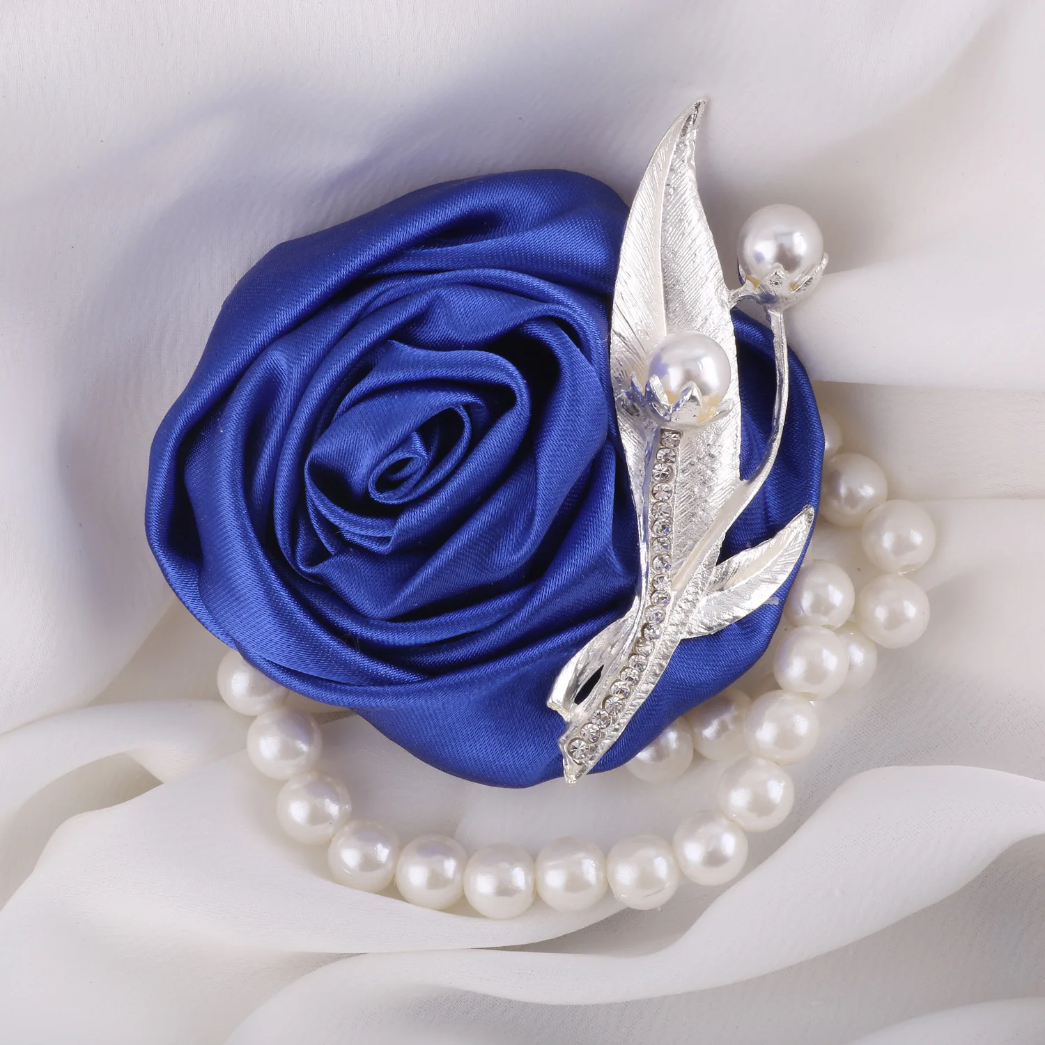 블루 로즈 웨딩 손목 코사지와 부토니에, 브로치, 신부 및 신랑의 결혼 드레싱 액세서리, 인공 꽃