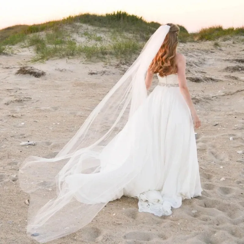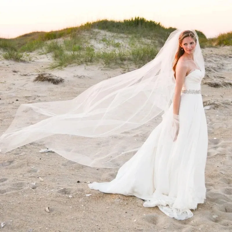 빗이 달린 부드러운 얇은 명주 그물 긴 신부 베일, 결혼 액세서리, 신부 헤어, 웨딩 베일, 3 미터