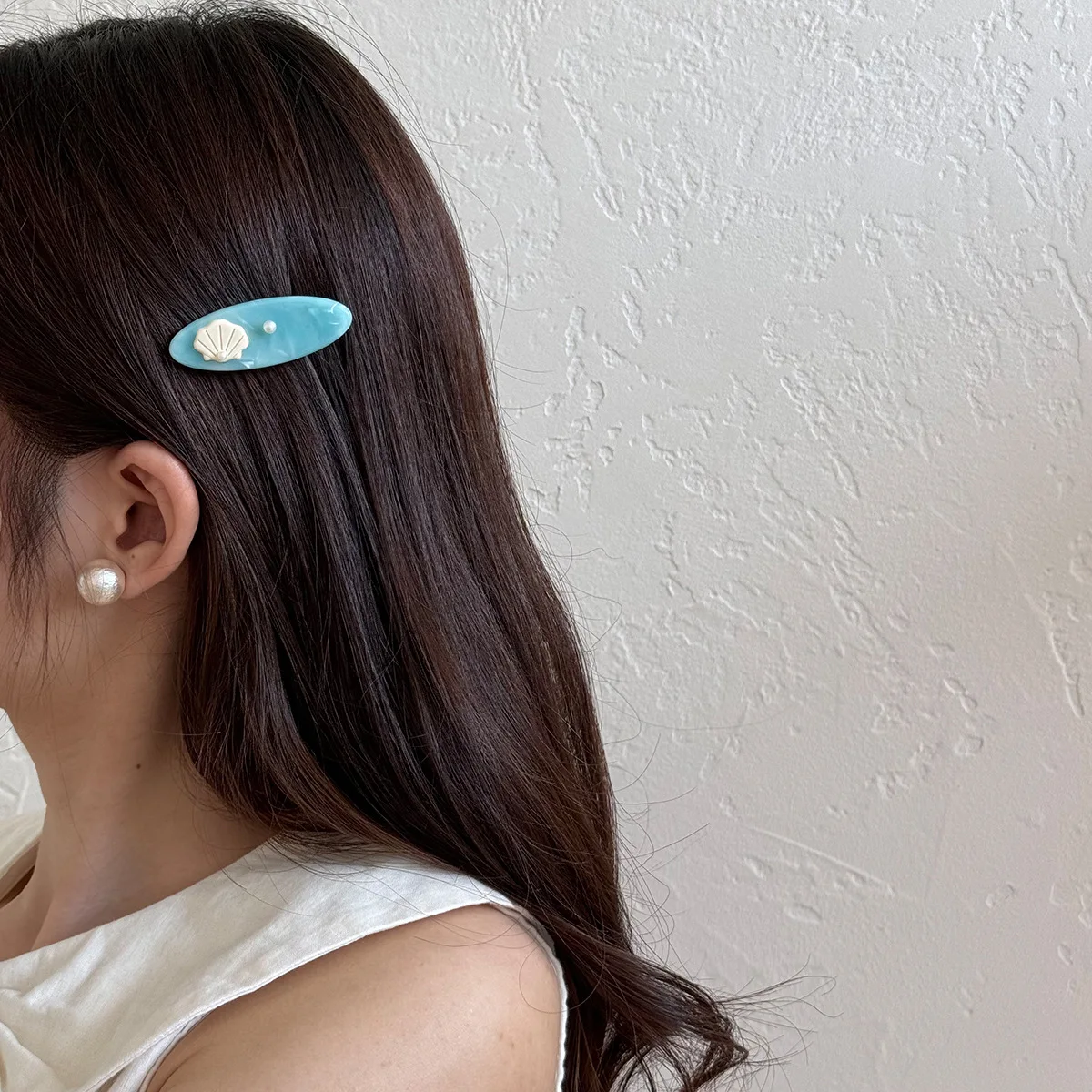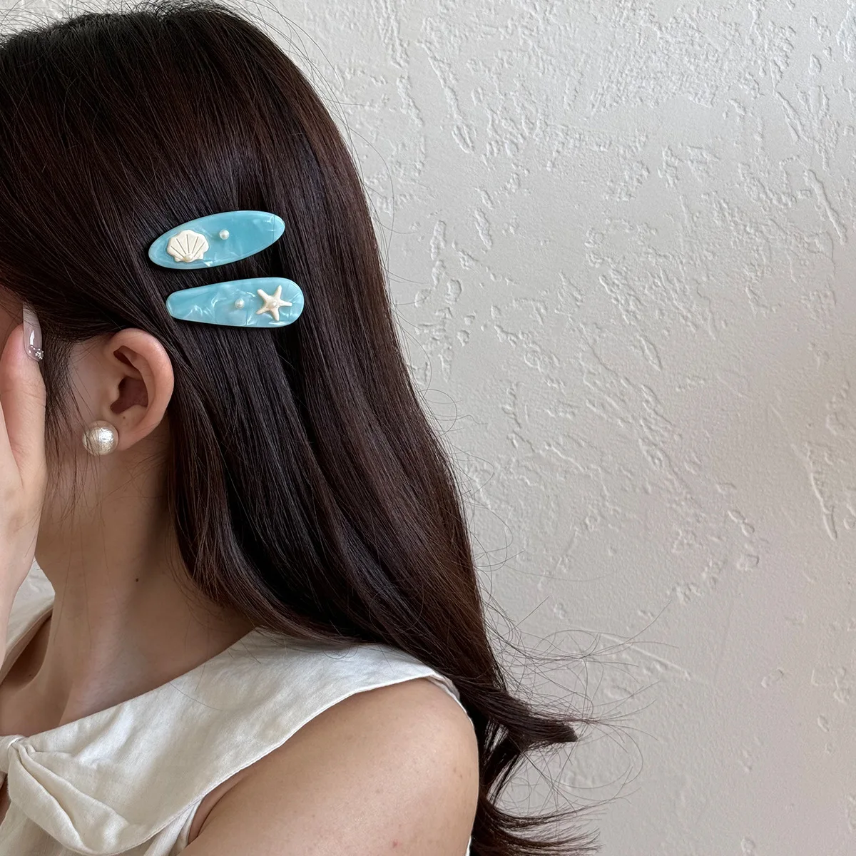 새로운 블루 아세트산 오리 부리 진주 쉘 사이드 클립 불가사리 도파민 바다 귀여운 헤어 액세서리 깨진 머리핀