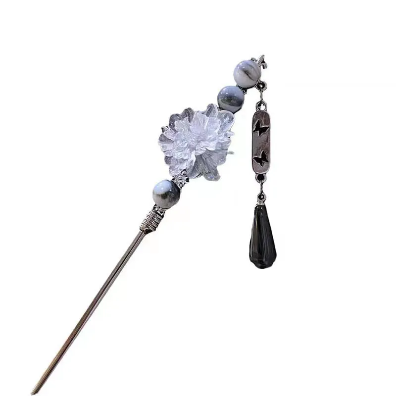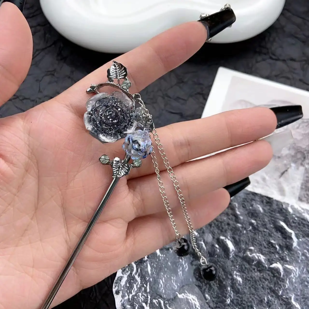 새로운 중국어 고대 스타일 잉크 워시 동백 술 머리핀 여자 꽃 코일 머리 단계 흔들리는 다목적 Hanfu 액세서리