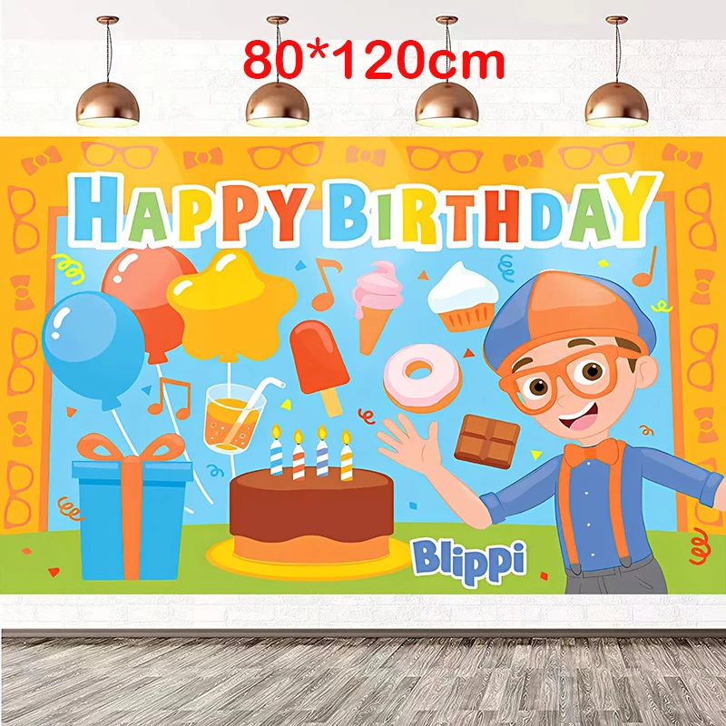 새로운 Blippiing 생일 파티 장식 호일 풍선 배경 배너 케이크 토퍼 아기 생일 파티 용품