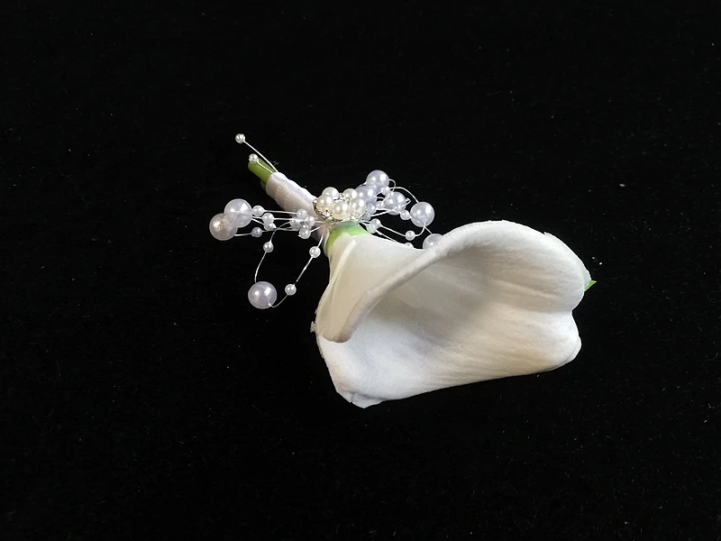 신랑용 화이트 칼라 릴리 코사지, 크리스탈 진주, Boutonniere 결혼, Alfileres boda invitadas