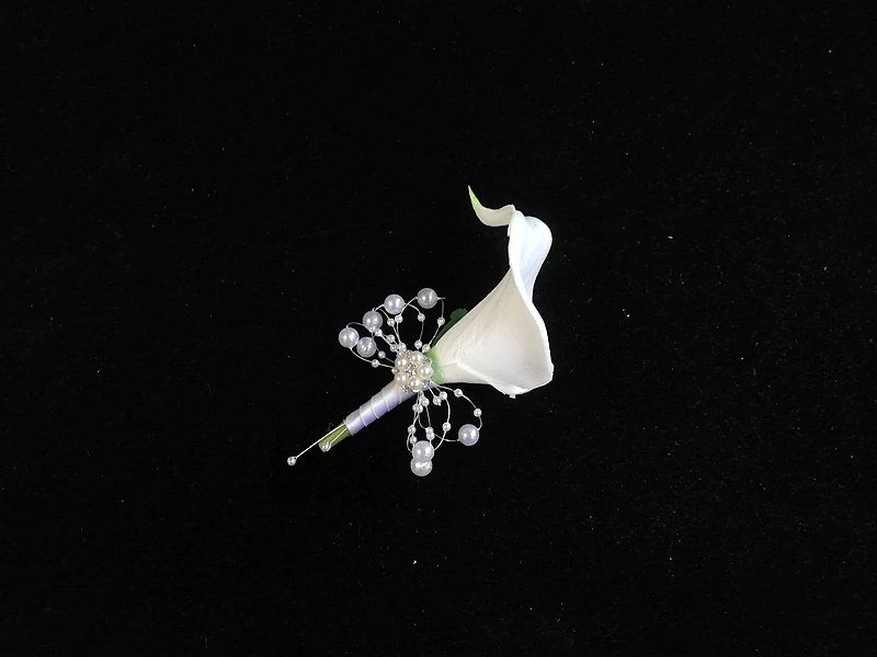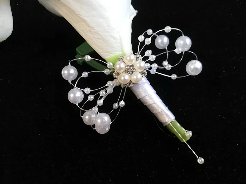 신랑을위한 흰색 칼라 백합 코사지 크리스탈 진주 Boutonniere mariage homme Alfileres boda invitadas