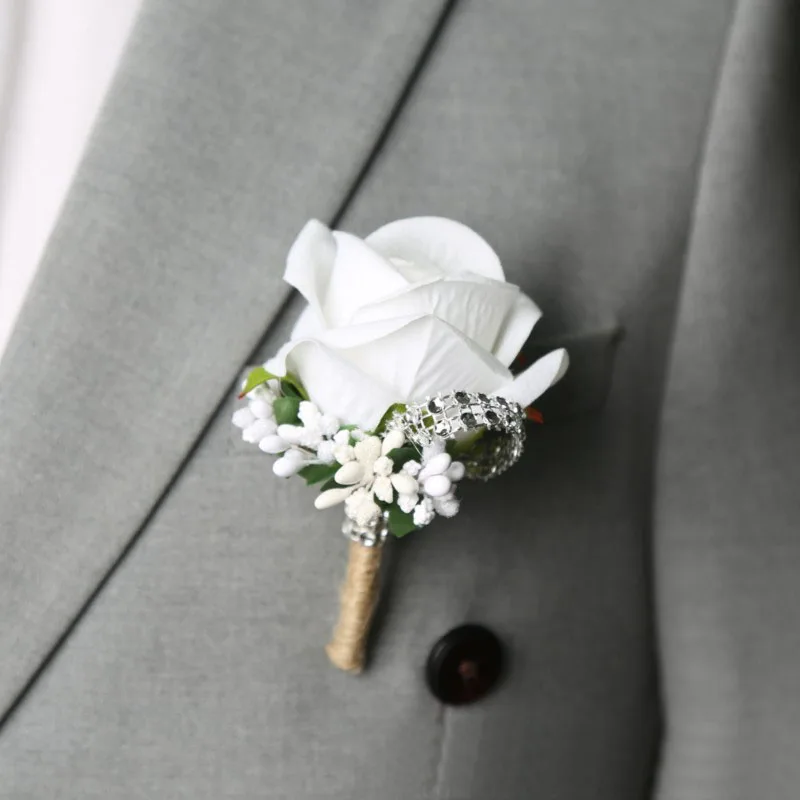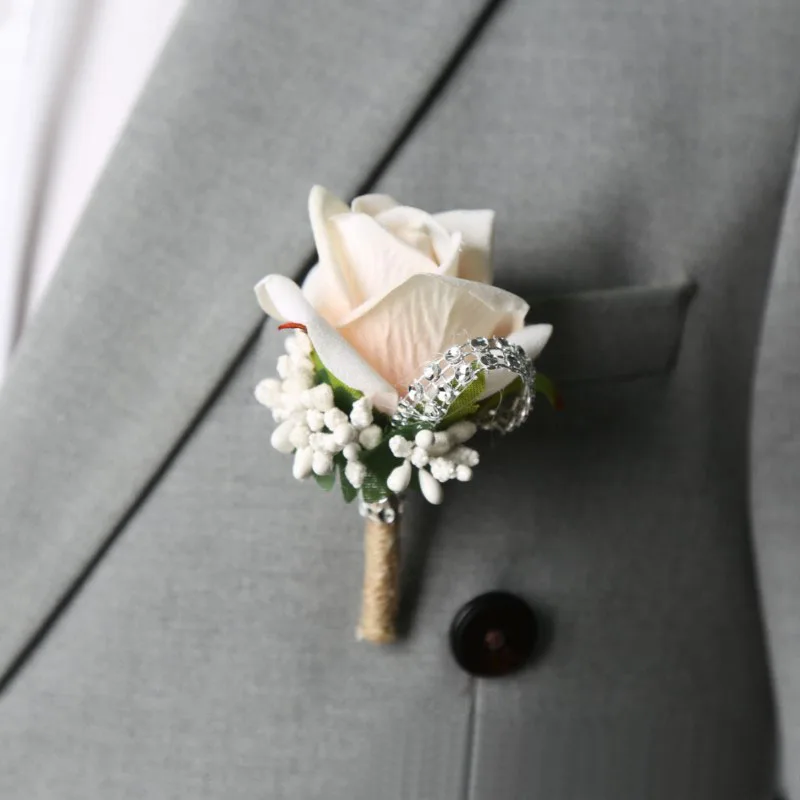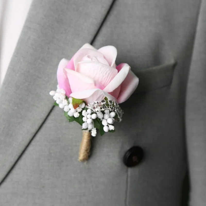 신랑 코사지 인공 브로치, 웨딩 파티 장식, 남녀공용, 단추 구멍 신부