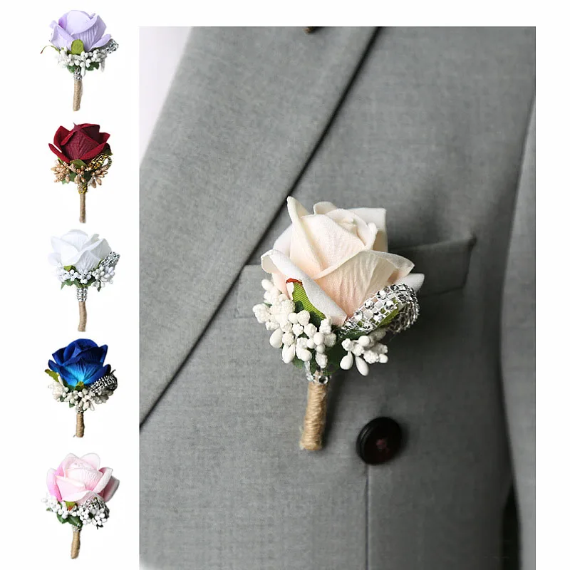 신랑 Boutonniere 코사지 핀 웨딩 실크 꽃 Groomsman Boutonnieres Buttonhole 웨딩 꽃 결혼 액세서리