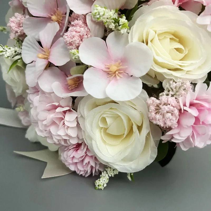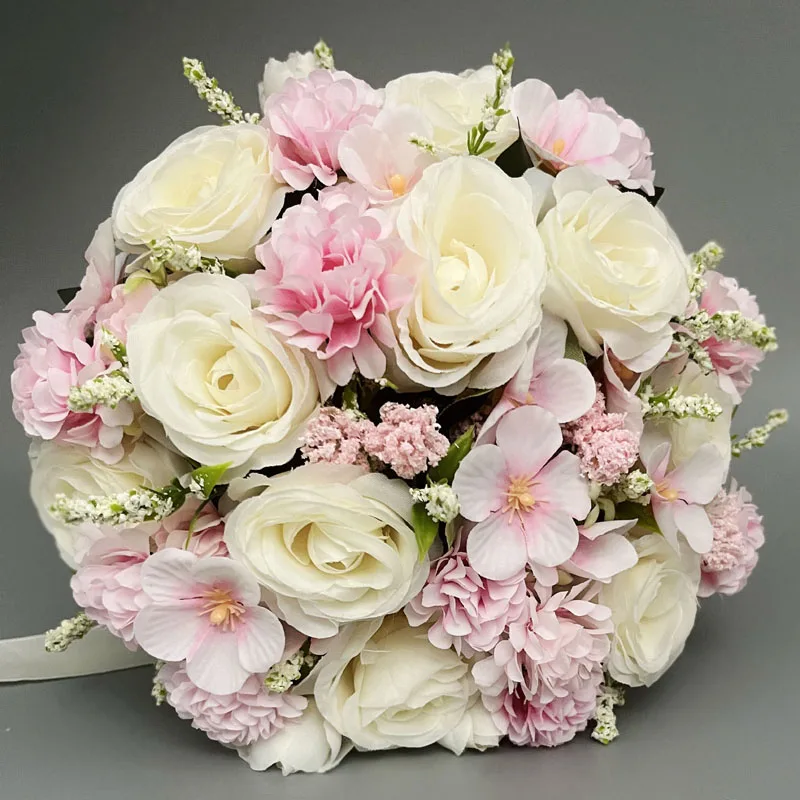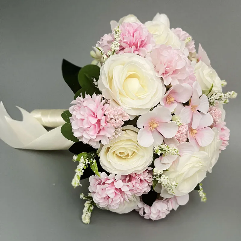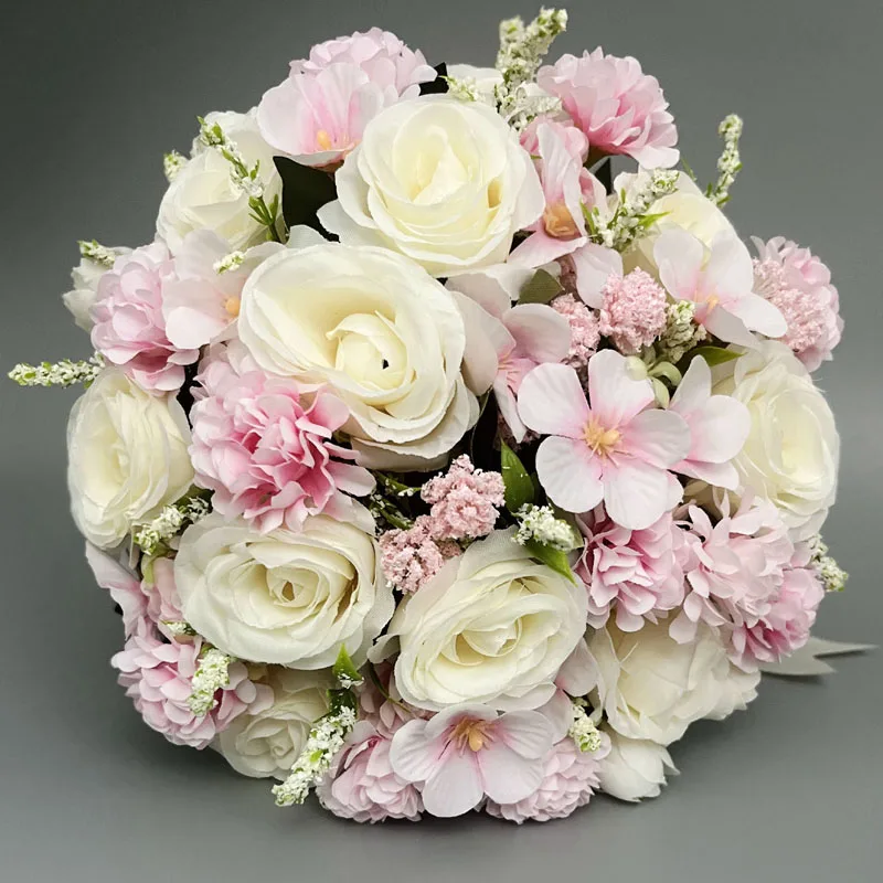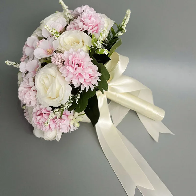 신부 들러리 웨딩 부케 흰색 실크 꽃 장미 웨딩 액세서리 결혼 꽃다발 인공 꽃
