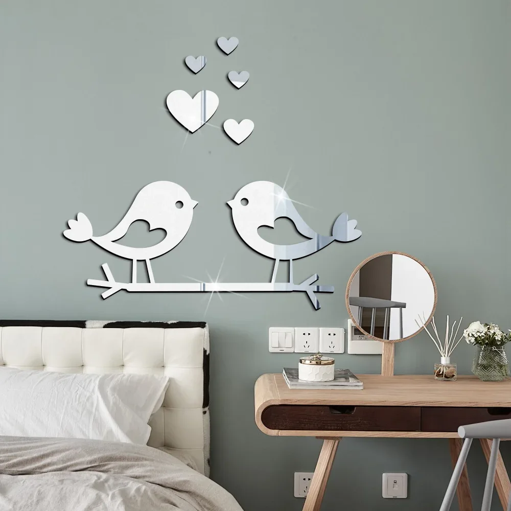 실버 아크릴 3D 거울 벽 스티커, 집 장식, 생일 파티, 결혼식용, DIY 벽지, 방 장식, 탈착식 포스터