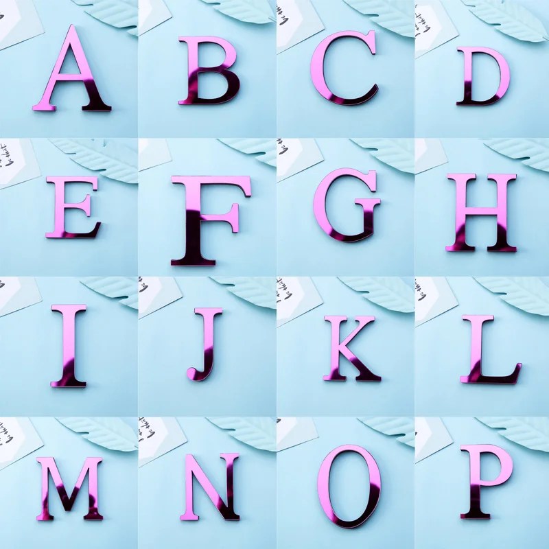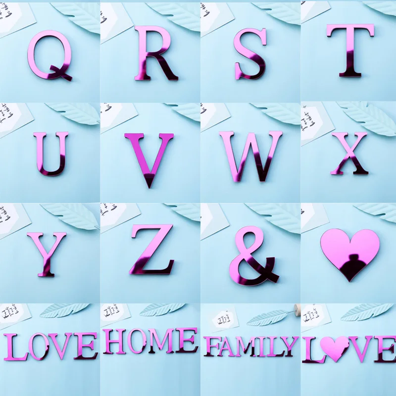 아크릴 블루 편지 3D 거울 벽 스티커 홈 인테리어 휴일 축하 거실 침실 DIY 자기 접착 예술 벽화