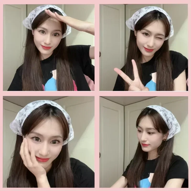 여성용 화이트 우븐 꽃 레이스 헤어 스카프 랩, 레트로 삼각형 머리 스카프 모자, 여행 사진 머리띠, 헤어 액세서리, 여름
