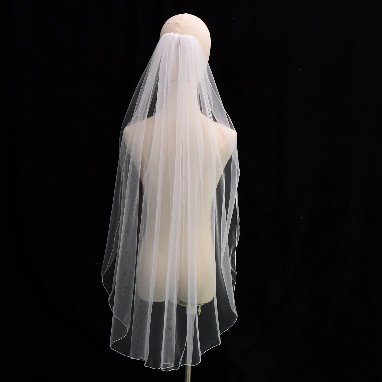 웨딩 베일 짧은 연필 가장자리 간단한 신부 베일, 우아한 로치 웨딩 베일, 긴 빗, 부드러운 싱글 V14