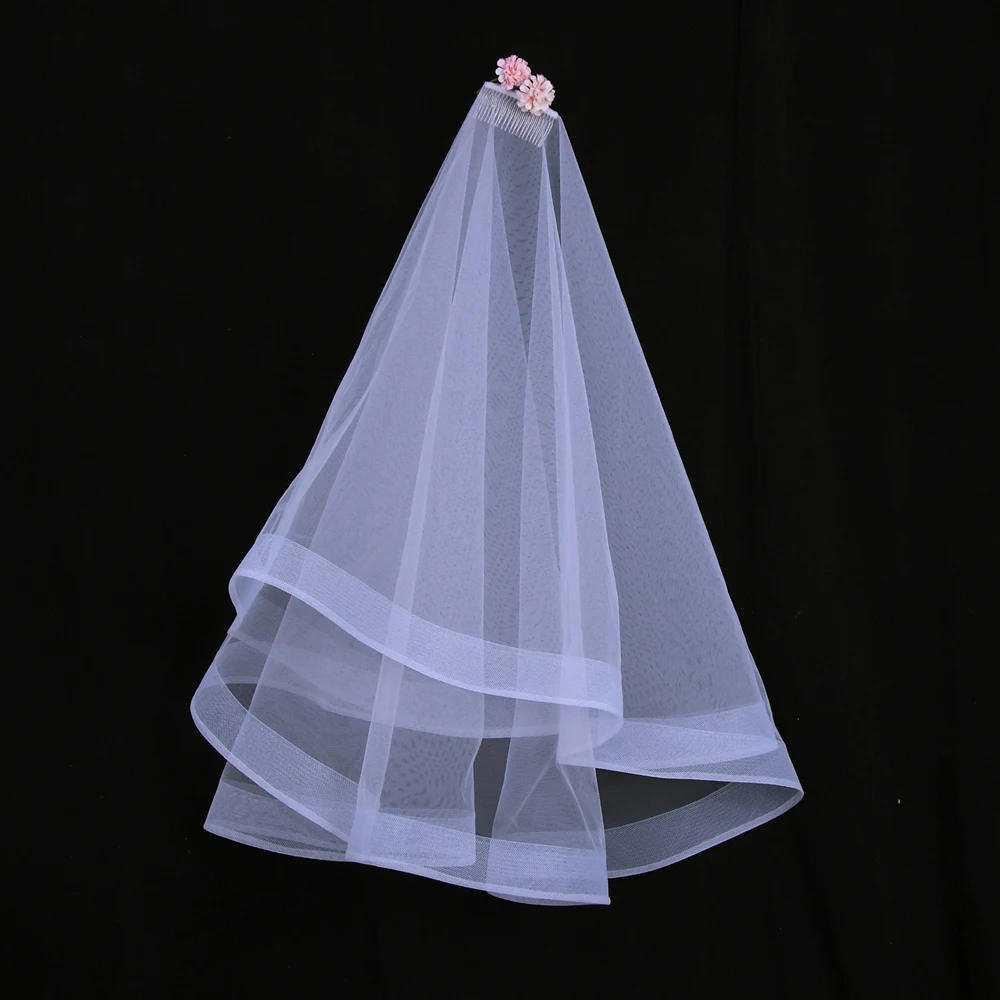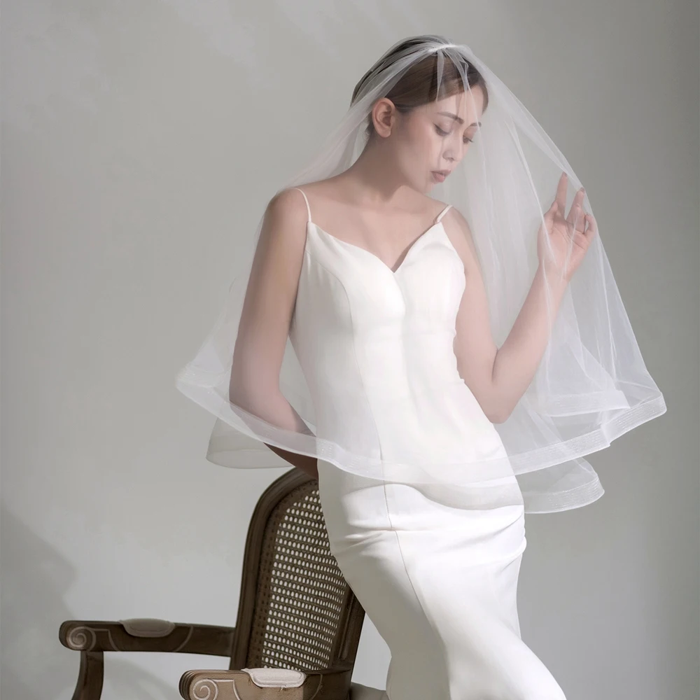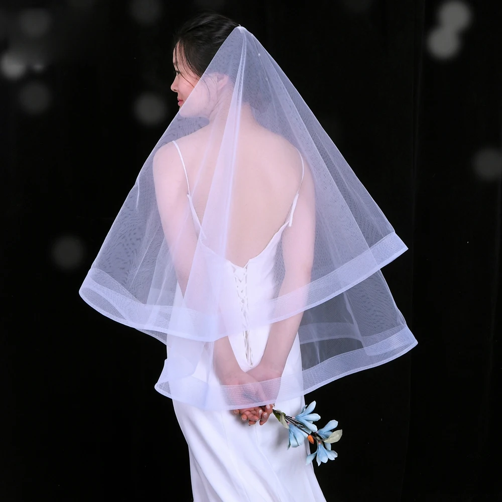 웨딩 신부 머리 장식, 로맨틱 교회 웨딩 스타일, 숙녀용 화이트 2 층 거즈 손가락 끝 베일