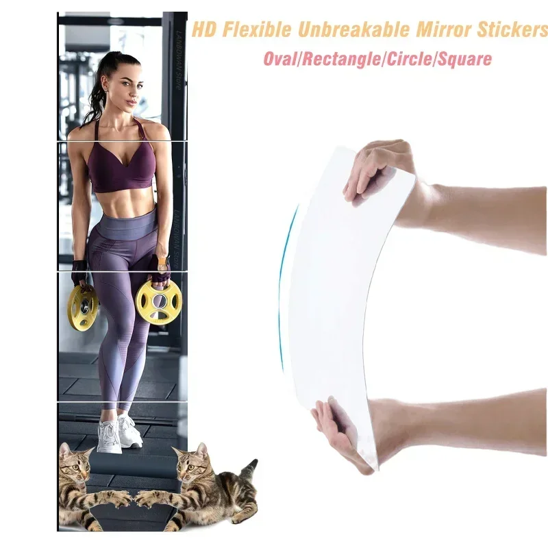 자체 접착 거울 시트, 유연한 비 유리 거울, 탈착식 거울 벽 스티커, 홈 룸 침실 3D 벽 장식