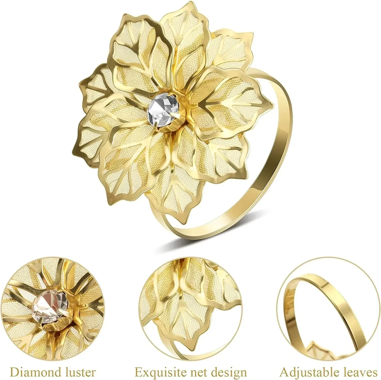 1/6 장미 꽃 냅킨 홀더 꽃 모조 다이아몬드 냅킨 반지 결혼식 크리스마스 파티 식탁 장식