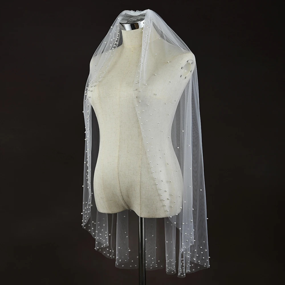 진주 신부 베일 웨딩 짧은 구슬 가장자리 베일, 빗 포함, 1 단 팔꿈치 길이, 웨딩 신부용 완벽한 액세서리, VP84