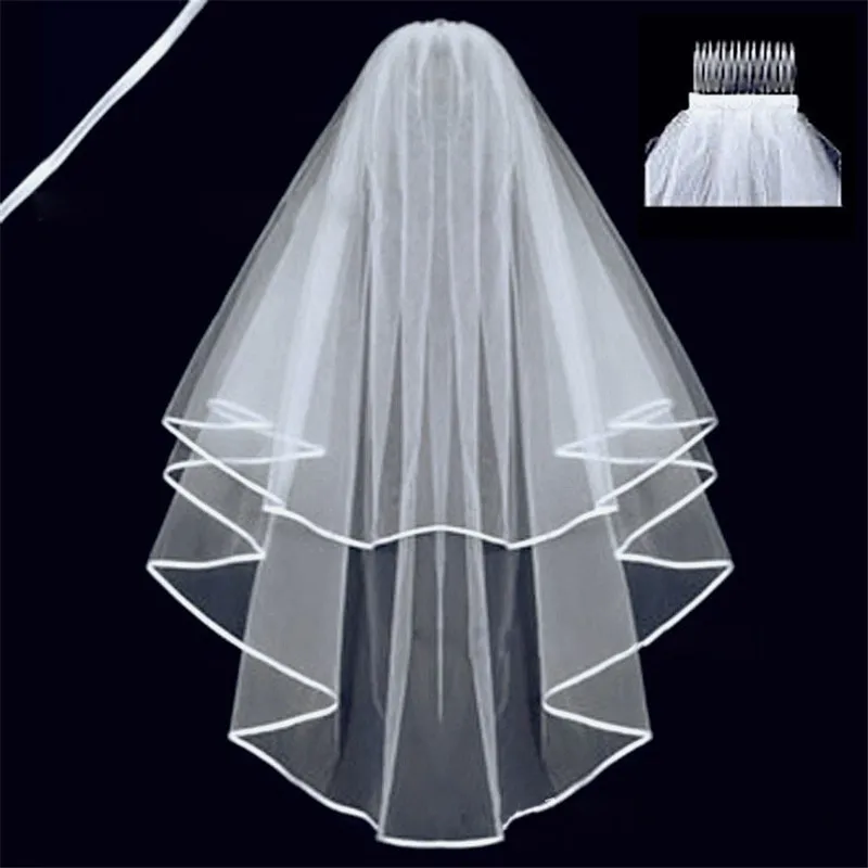짧은 간단한 웨딩 베일 Tulle 두 레이어 빗 화이트 아이보리 신부 베일 결혼을위한 신부 웨딩 액세서리