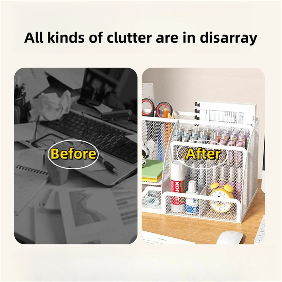책상 편지지 주최자 크리 에이 티브 금속 펜 홀더 연필 파일 스토리지 랙 7 그리드 스토리지 박스 분할 컨테이너 사무실 액세스