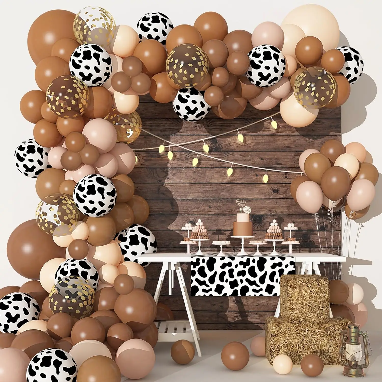 카우보이 풍선 화환 아치 키트, 암소 다크 브라운 중립 블러쉬 색종이 인쇄 풍선, 파티 장식 용품, 170 개