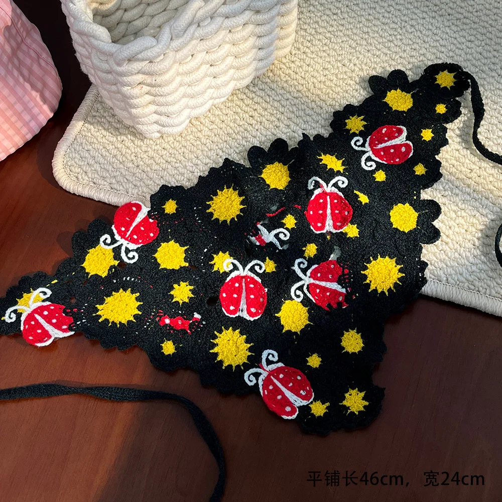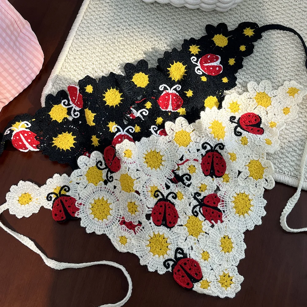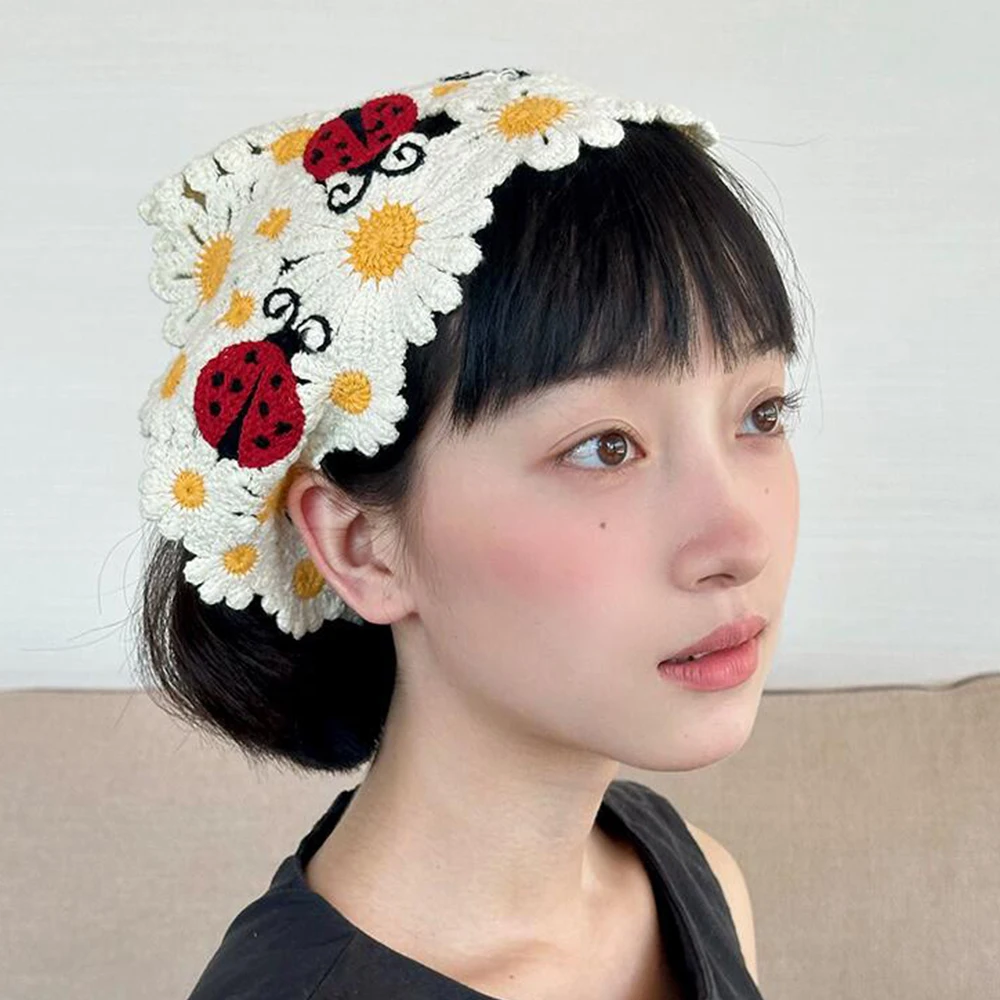 한국어 달콤한 귀여운 수제 크로 셰 뜨개질 중공 삼각형 머리띠 수건 여성 봄과 여름 니트 꽃 여행 사진 헤어 스카프