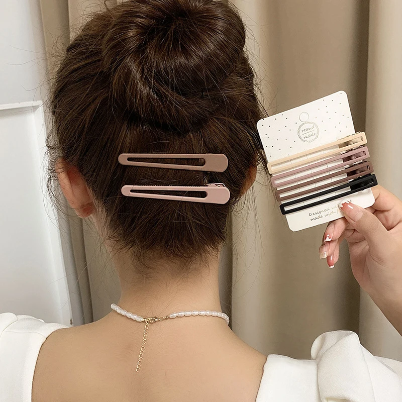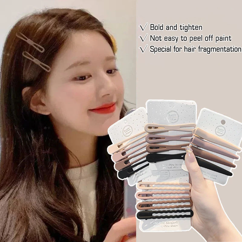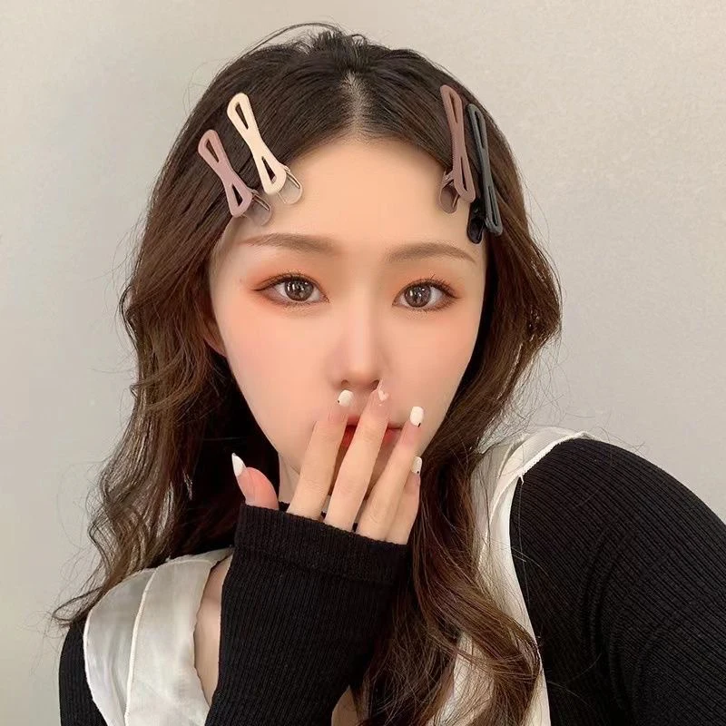 한국 우아한 커피 컬러 헤어 클립 세트, 소녀 심플한 금속 머리핀, 유행 액세서리, 3 개, 4 개