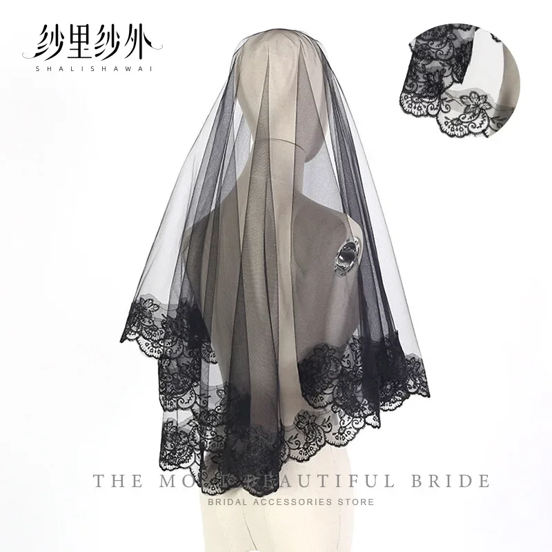 할로윈 웨딩 신부 머리 장식 검은 짧은 레이스 빈티지 사진 소품 유령 신부 여행 촬영 베일 웨딩 액세서리