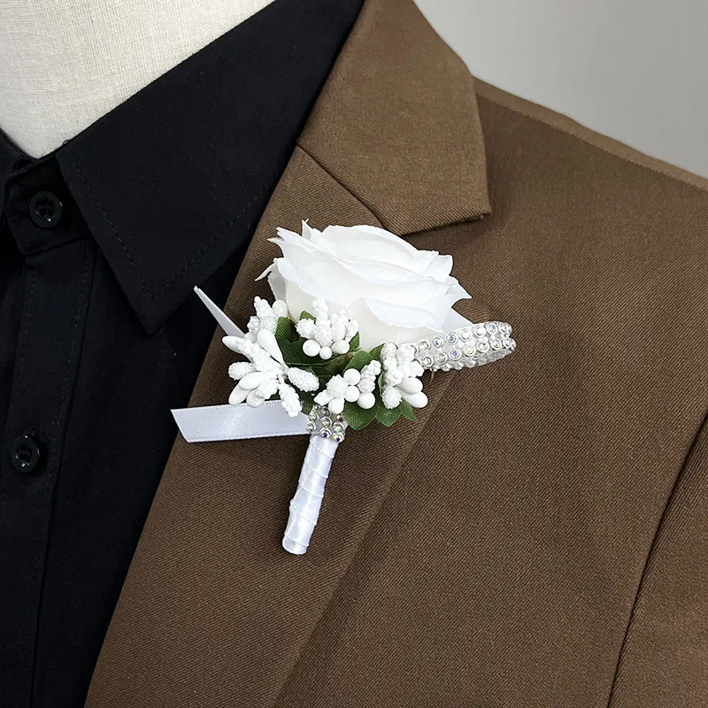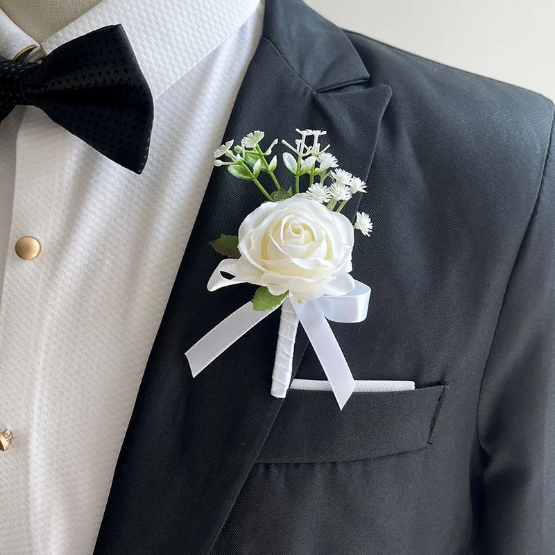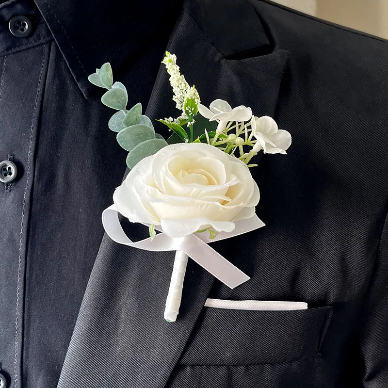 화이트 웨딩 Boutonniere 손님 신랑 손목 꽃 인공 실크 장미 코사지 단추 구멍 신부 들러리 결혼 액세서리