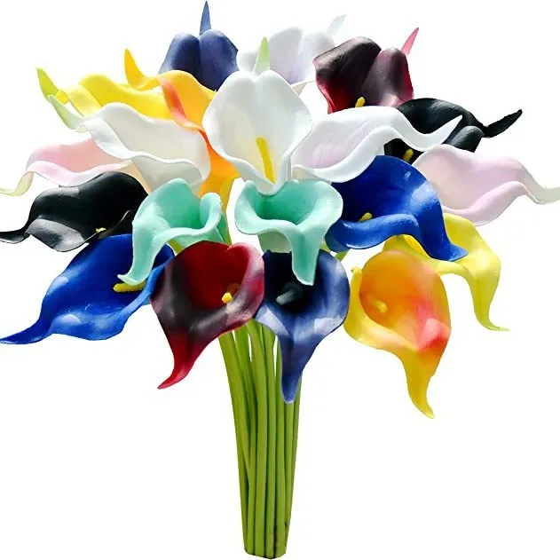 1/5/10Pcs 칼라 릴리 가짜 꽃 웨딩 부케 인공 리얼 터치 라텍스 꽃 홈 웨딩 생일 파티 장식