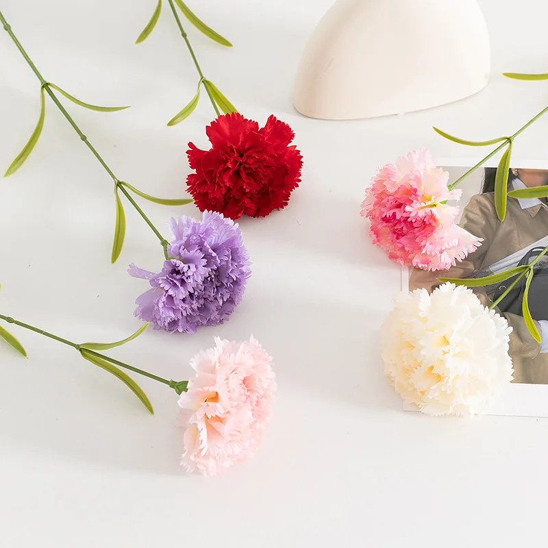 1/5/10pcs 60cm 흰색 시뮬레이션 꽃 단일 헤드 대형 꽃 카네이션 실크 천 가짜 꽃 홈 인테리어 배열