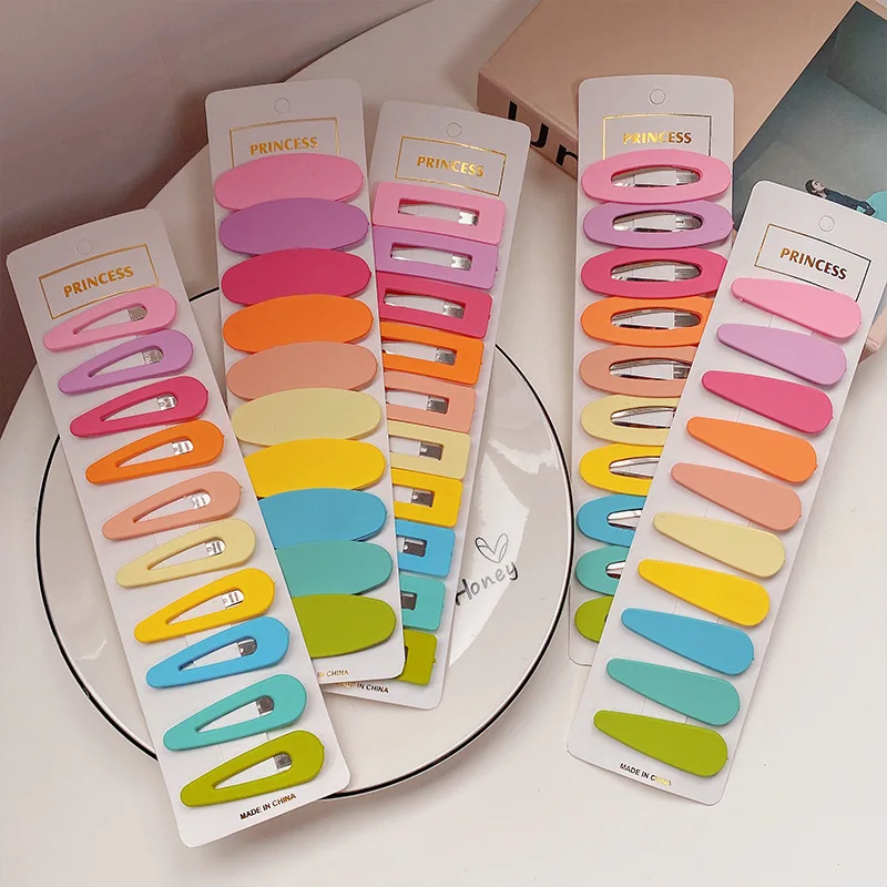 10 개/대 다채로운 BB 클립 캔디 컬러 달콤한 기하학 헤어 클립 여자 머리 장식 머리핀 자용 헤어 액세서리