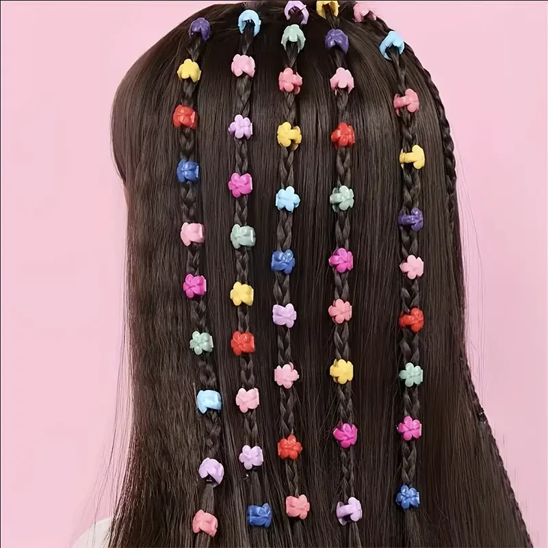 100Pcs 다채로운 작은 여자 헤어 클립 귀여운 꽃 스타 머리 발톱 스타일링 머리 끈 머리핀 아이 헤어 액세서리 모자를 쓰고 있죠
