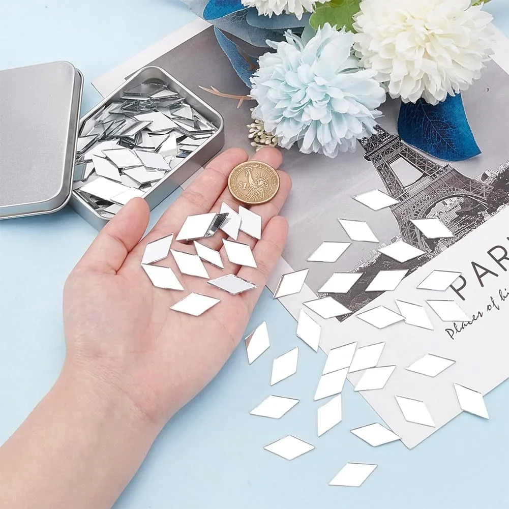 100pcs 아크릴 다이아몬드 모양 거울 스티커 모자이크 타일 대량 자기 접착제 DIY 공예 미술 거울 벽 문 홈 장식