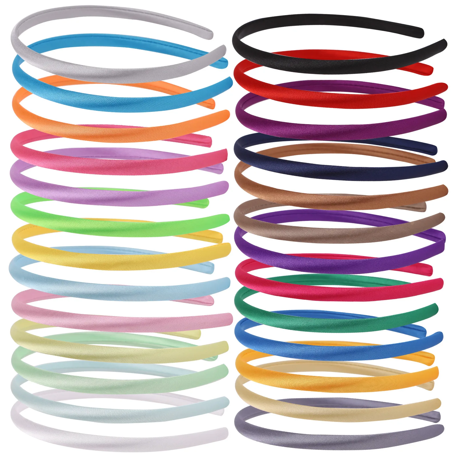 10pcs 블랙 새틴 머리띠 DIY 새틴 덮여 머리띠 여자를위한 흰색 공예 머리 머리띠 얇은 일반 머리띠 1cm