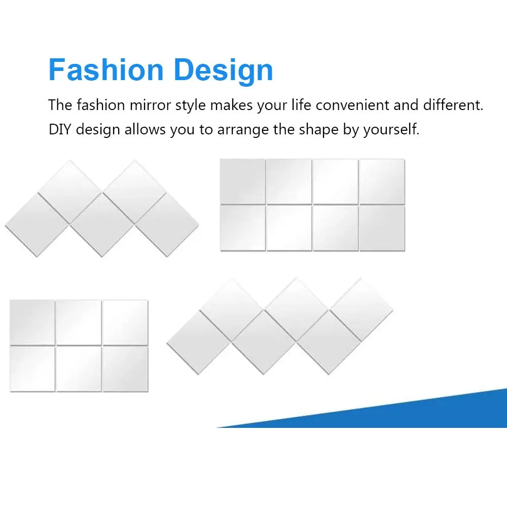 10pcs 홈 장식 욕실 자기 접착 벽화 거울 스티커 벽 타일 스티커 광장 DIY 데칼