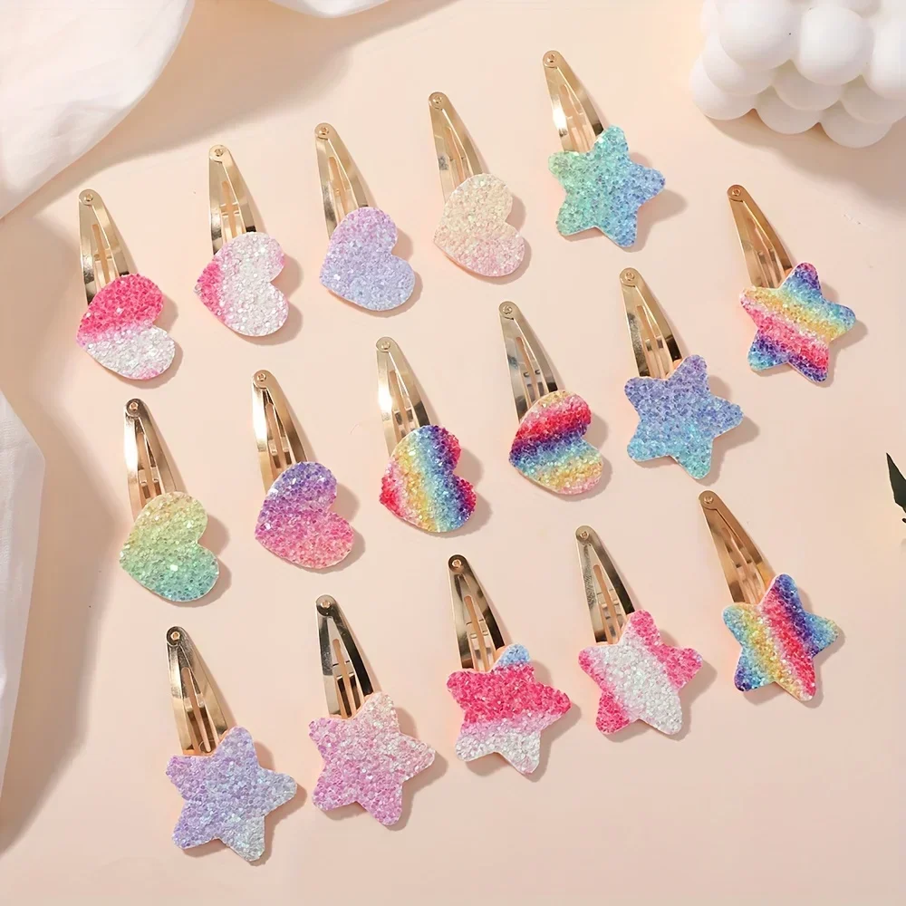 16개/세트 글리터 BB 수제 헤어 클립 (여아용) 수제 무지개 하트 별 헤어핀 귀여운 바레트 헤어 액세서리