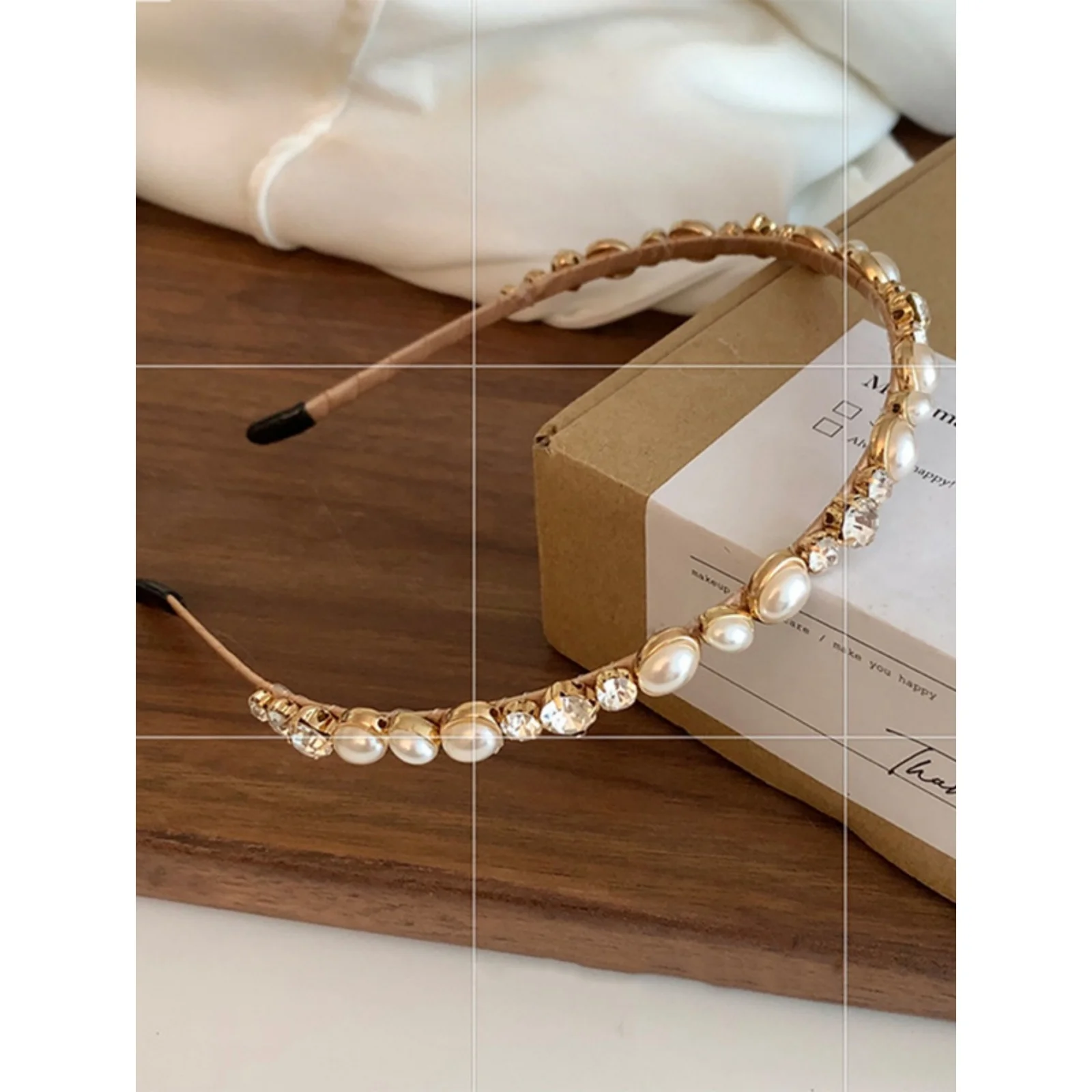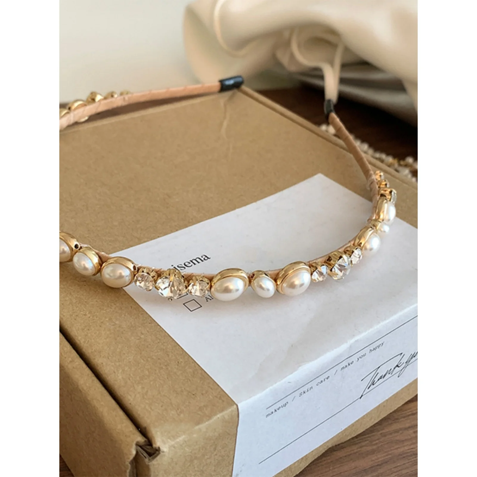 1PC 다이아몬드가 박힌 진주 헤어 후프, 라인스톤 머리띠, 코트 스타일 헤어 액세서리, 불규칙한 모양ABS