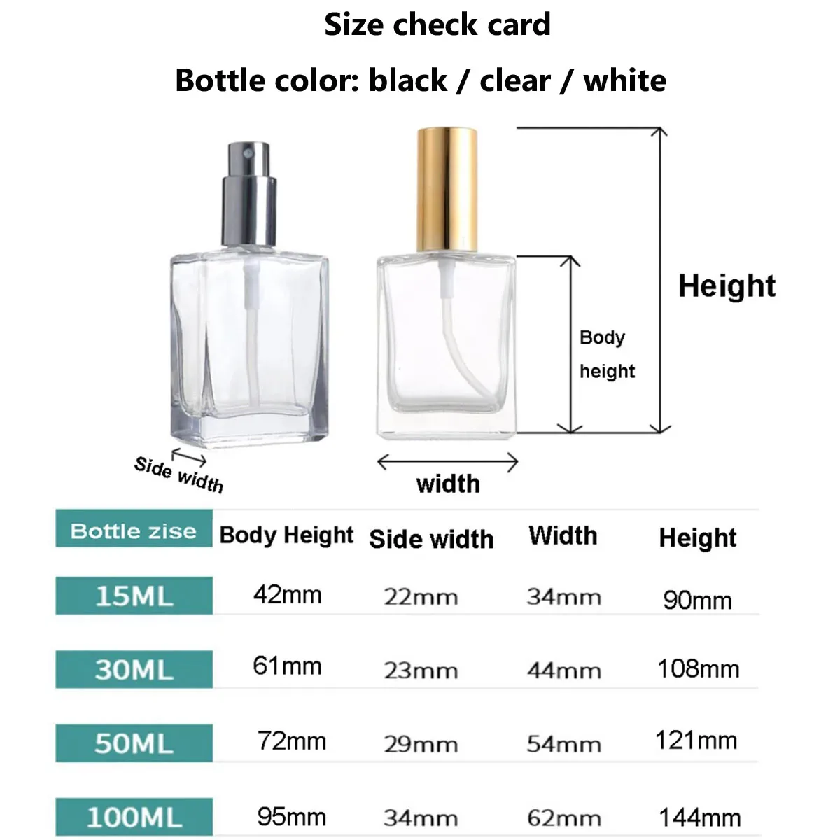 • 크기: 100 미리리터,50ml,30ml,15ml