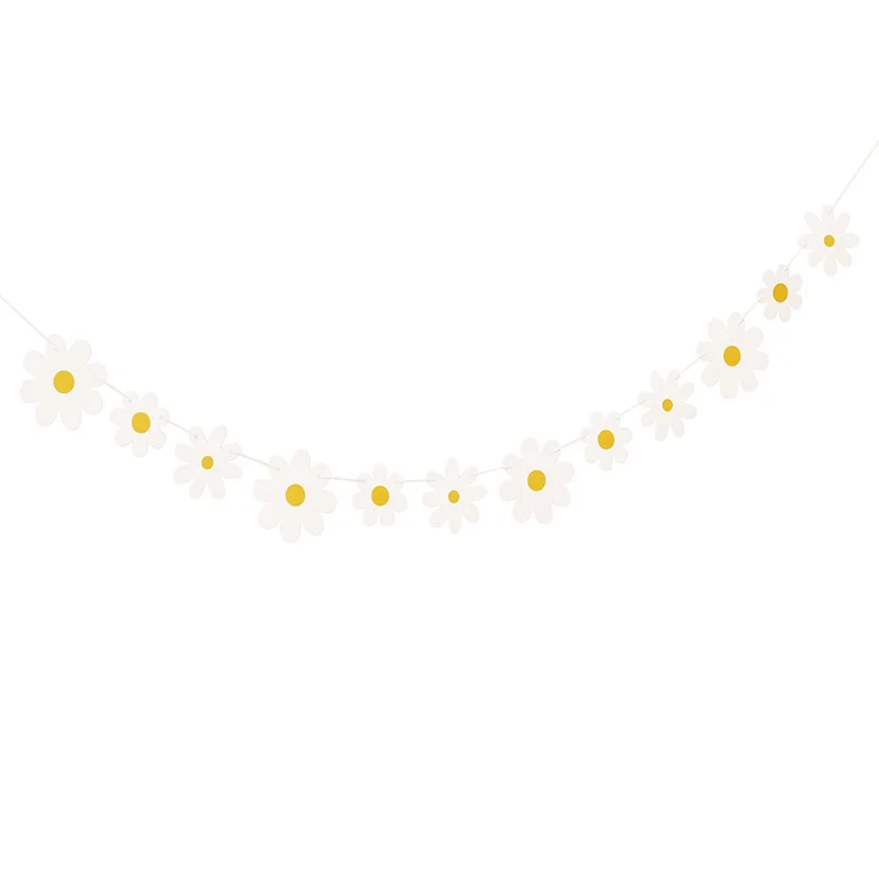 2pcs 흰색 데이지 꽃 종이 배너 매달려 갈 랜드 그루비 Boho 소녀 생일 파티 장식 플래그 웨딩 용품을 당겨