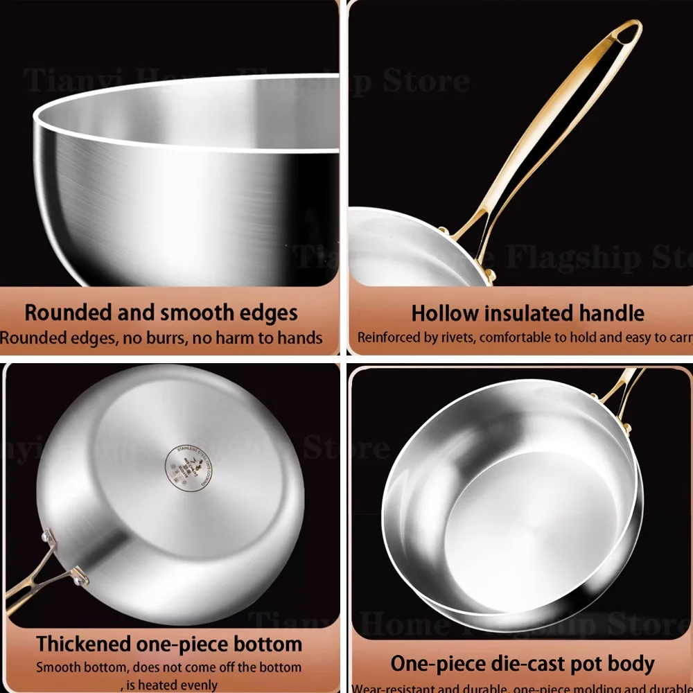 316 스테인리스 스틸 깊은 프라이팬 논스틱 웍 가정용 스테이크 스킬렛 가스레인지 인덕션 쿠커 조리 냄비 주방 조리기구