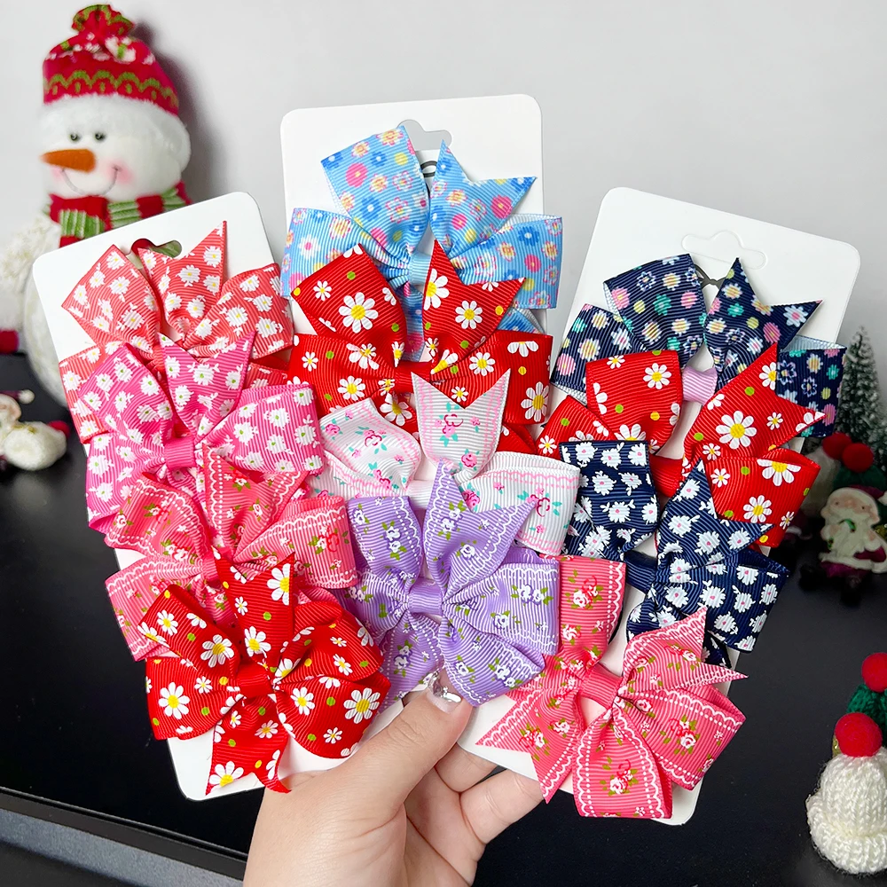 4 개/대 귀여운 소녀를위한 달콤한 레이스 인쇄 Bowknot 헤어 클립 수제 머리핀 부티크 바레트 머리 장식 어린이 헤어 액세서리