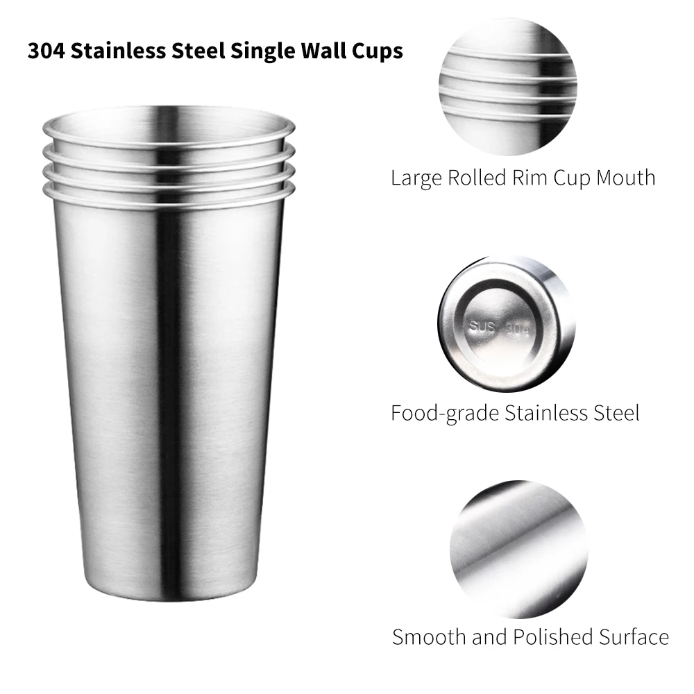 4pcs 300ml/500ml/600ml 스테인레스 스틸 컵 금속 파인트 깨지지 않는 비산 방지 마시는 안경 쌓을 수있는 워터 컵 텀블러
